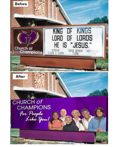 Our SignWraps started out as a temporary solution for one client. It wasn't long before these were one of our most popular items. SignWraps can be configured for most any sign that is in square or rectangale.