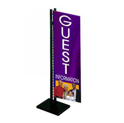 Is your Welcome Center appropriately marked so your Guests can easily find it? Our heavy-duty counter stand rises 54 " tall and can be easily seen in a crowd. A colorful 14" x 50 " two-sided banner is included.